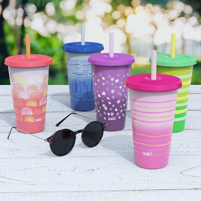 Zak Designs 25 Oz Color Changing Tumbler 12 Pack Set Reusable Plastic With Splash Proof Lids And Straws Assorted Colors Sam S Club
